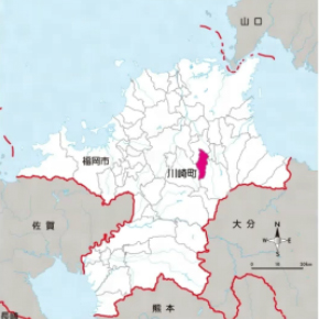 川崎町は福岡県田川郡の南西部に位置し、南北12.6㎞、東西4.9㎞、総面積36.14㎢です。
