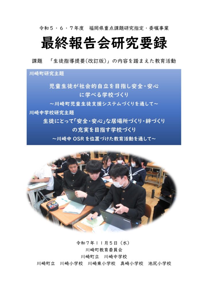 令和5・6・7年度 福岡県重点課題研究指定・委嘱事業 川崎中学校最終報告会について