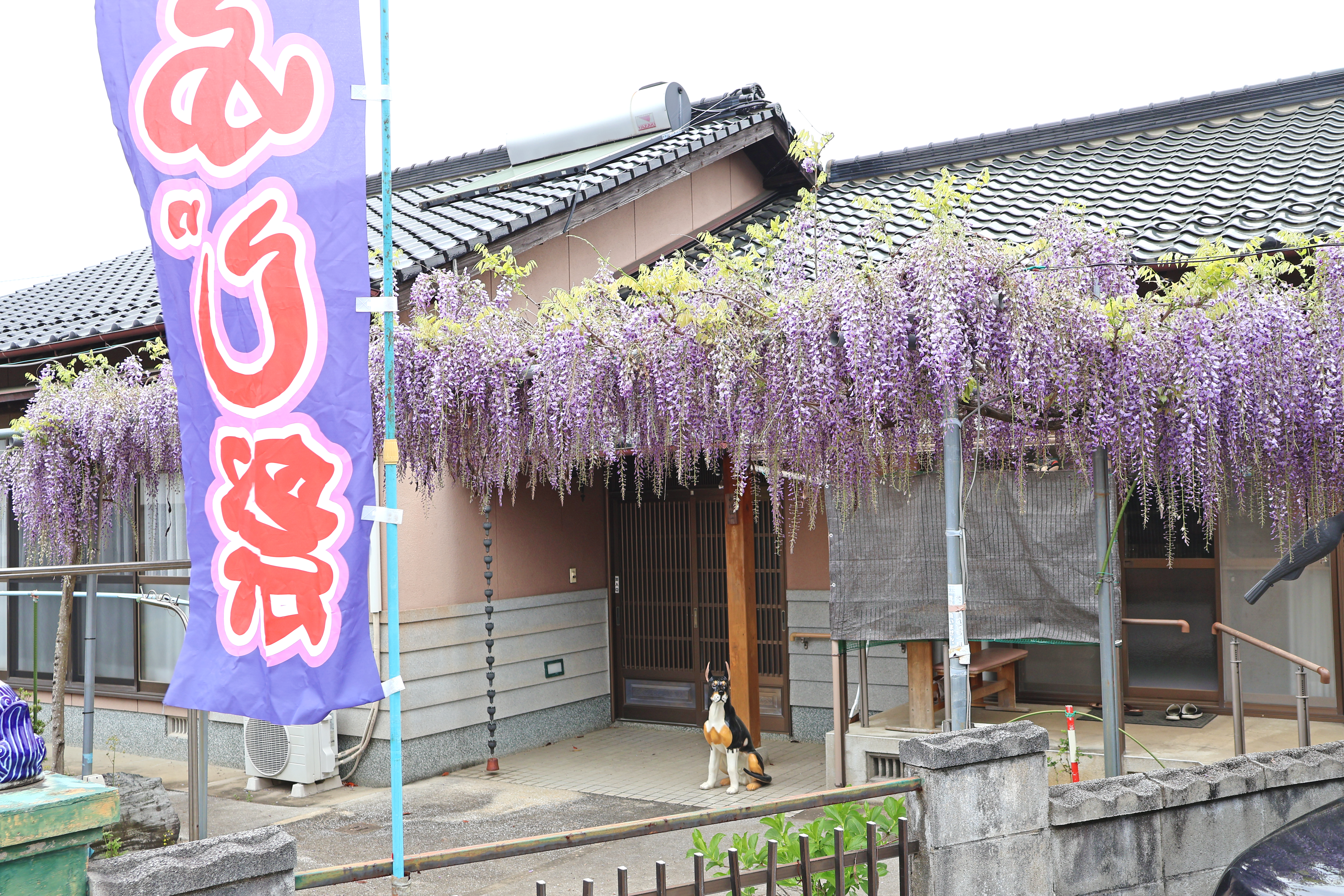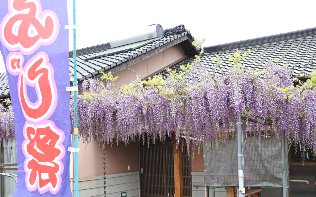 島廻行政区の中川さんから、「自宅の藤の花がきれいに咲いている」との情報をいただき伺うと、満開で見ごろを迎えていました。