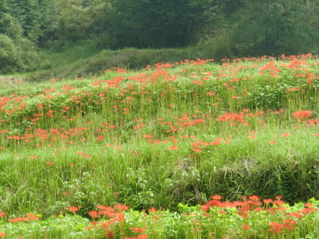 棚田全体としては4.5分咲きです。今年は花の数が少なめです。